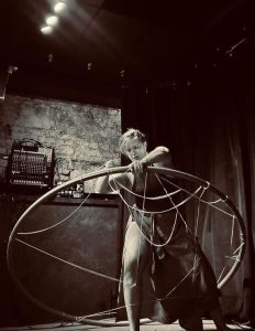 Leaf Pankratz (they/them) is a Canadian performer and artist. With a background in theatre, their work explores a philosophy of disability as a creative catalyst. Their work as an interdisciplinary creator and producer includes drag performance, contemporary dance, physical theatre, visual and sound art, performance, and circus arts. They first began training in theatre at the age of four, and have continued ever since expanding into improv comedy, physical theatre, and musical theatre. Having recently graduated from the Theatre Studies MA program at the University of Guelph, they hold a BAHonours from the University of Winnipeg in linguistics and theatre, and a Certificate in Deaf Studies through Red River College. Pankratz has trained with SITI company, Prairie Circus Arts, and the National Ballet School of Canada. Pankratz’s short film, Adamah, has screened internationally as an official selection of the Circus International Film Festival, and in the Reel Pride Winnipeg shorts competition. Their live performance adaptation/continuation piece debuted at the Helmut Gallery in Leipzig, Germany.